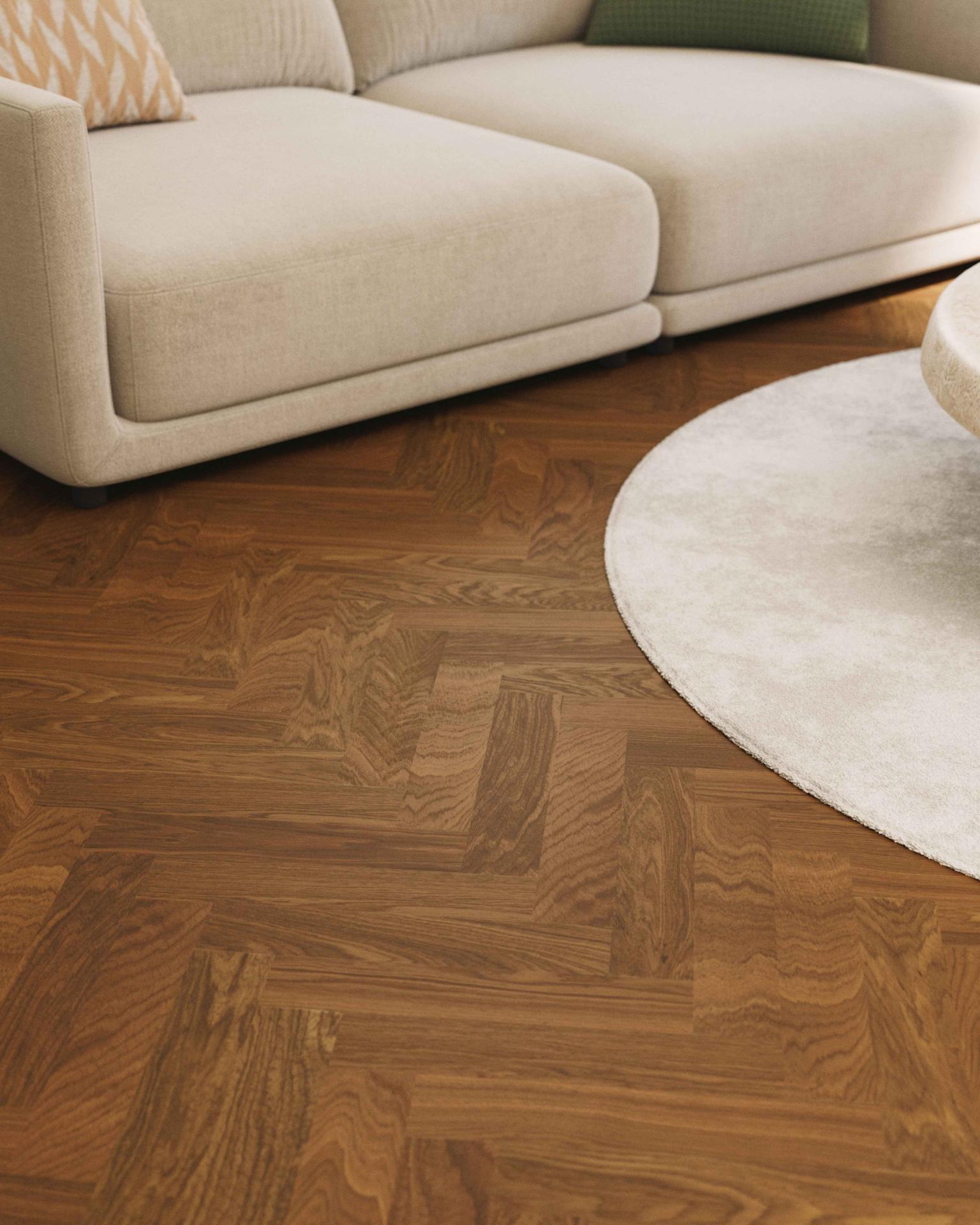 Woodura Herringbone 3.0 er fremstillet med patenterede teknologier for at give en mere holdbar og bæredygtig gulvoplevelse. Serien er en moderne fortolkning af det klassiske, traditionelle sildebensmønster og kombinerer forbedret slag- og vandmodstand med skandinavisk inspirerede farver og to elegante formater.