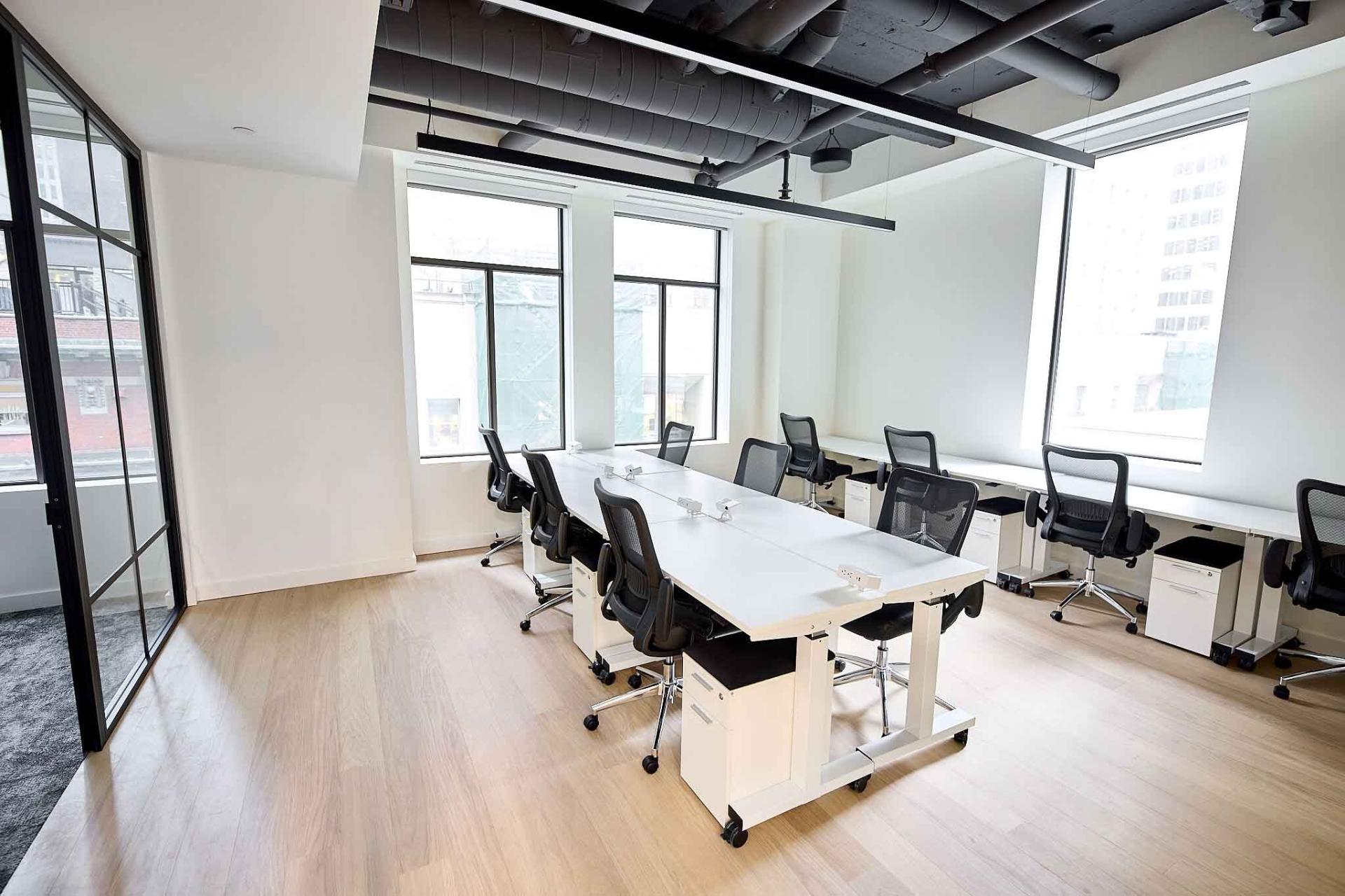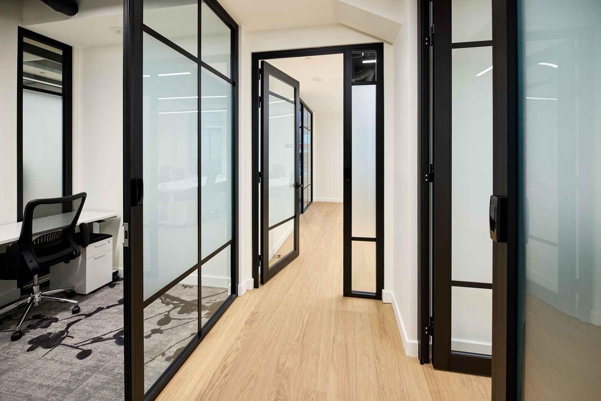 Målet for IQ Offices i Toronto, Canada, var at skabe en atmosfære som i et 5-stjernet luksushotel i et fleksibelt kontormiljø. Denne vision begyndte med gulvet, som skulle finde en balance mellem holdbarhed, varme og raffinement. »Vi valgte Bjelin-gulve, fordi de giver det autentiske udseende og fornemmelse af massivt hårdttræ kombineret med ydeevnen og stabiliteten af et konstrueret produkt, alt sammen til en mere overkommelig pris.« Woodura Herringbone 2.0-gulve blev valgt for at afspejle bygningens arv, og Woodura Planks 3.0 blev valgt til kontorgulvene for at forstærke rumfølelsen.