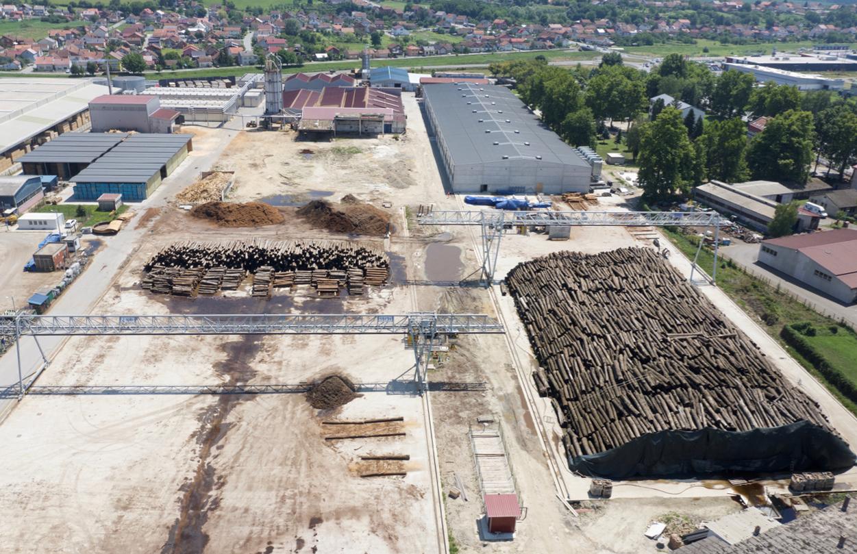 Dette anlæg har sit eget savværk, hvor vi saver og tørrer træstammer i moderne ovne og omdanner dem til lameller til det midterste lag i vores parketgulve. De øverste lameller fremstilles på vores fabrik i Bjelovar. Derudover prioriterer vi bæredygtighed ved at genanvende savsmuld og træaffald som råmaterialer til vores pille- og briketproduktion.