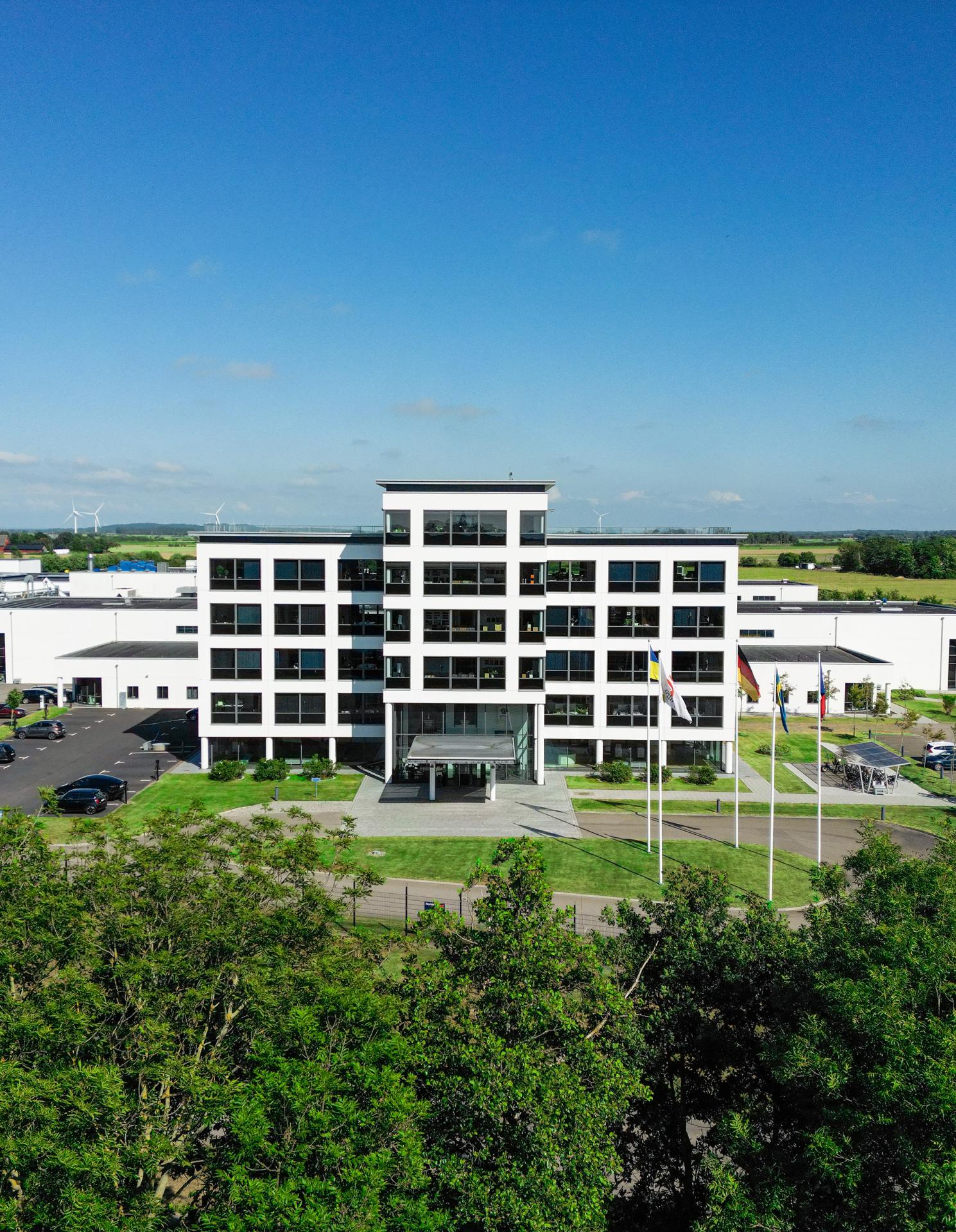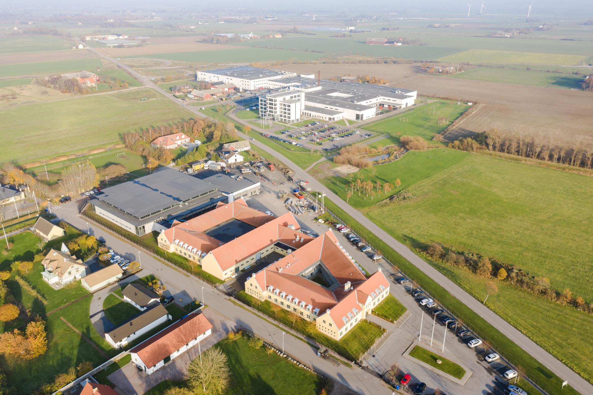 Billedet viser Bjelin's og Pervanovo's hovedkontor med Välinge Innovation AB i baggrunden.